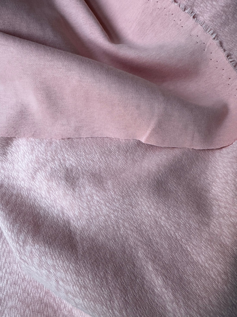 Prachtige lichtroze interlock katoen van Mind the Maker. Er zit een klein werkje in en is aan de achterkant glad.