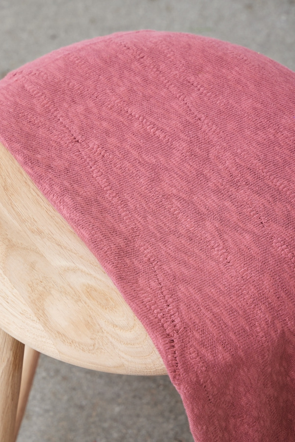 Deze rosewood jacquard heeft een leuk golvend werkje: zo wordt er een speels effect gecreëerd voor een toffe trui, jurk of rok.