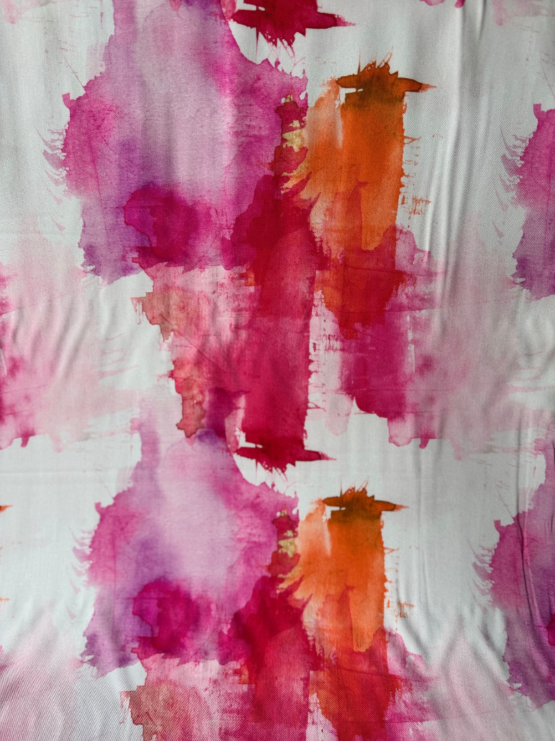 Zomer in een stofje met deze Ecovero viscose met aquarel design.