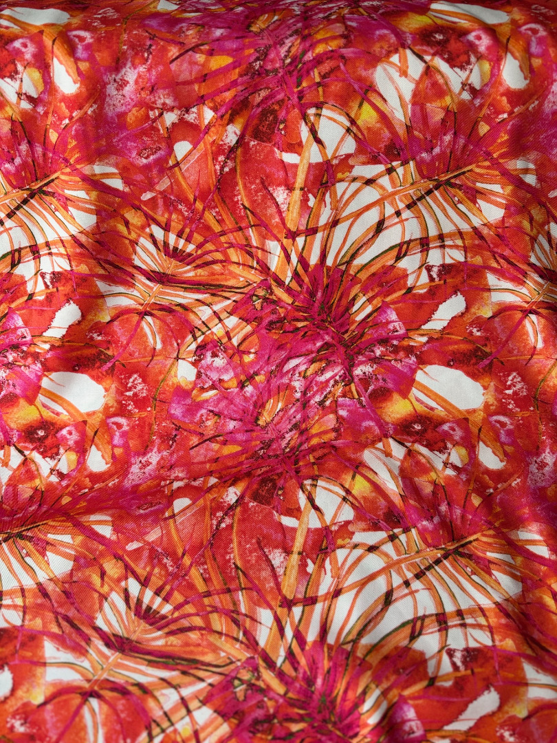 Met deze oranje-roze viscose maak je een statement-outfit!
