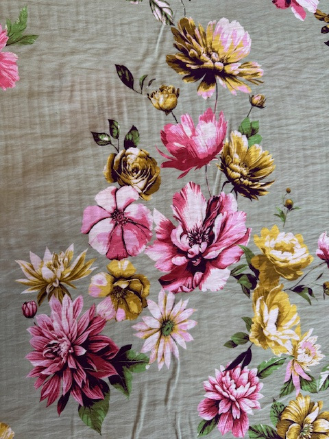 Opvallen doe je met deze prachtige viscose van A La Ville met grote bloemen. Match 'm met de limegroen krijtstreep of de limegroen rayon.