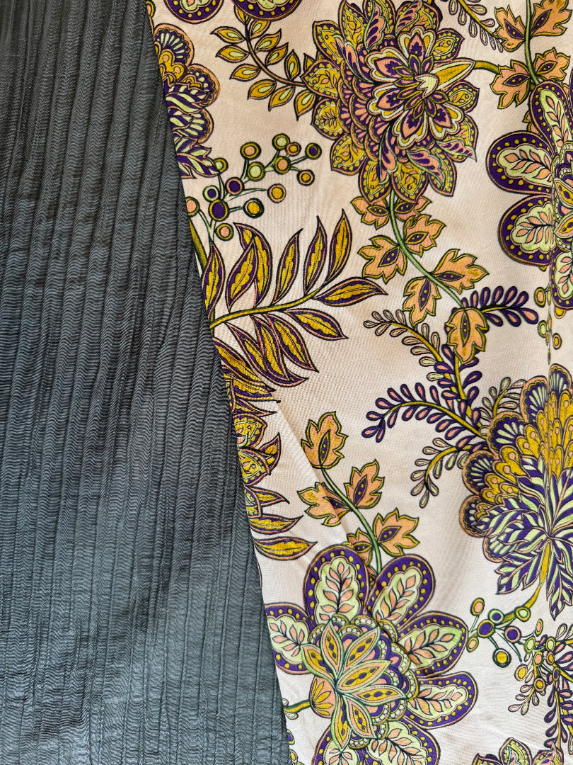 Toffe donkergroene lyocell van A La Ville met rimpelstructuur. Matcht tof met de grote bloemen katoen van A La Ville. Maak een eenvoudige rok met elastieken band en een mooie blouse,,,, en je hebt een prachtige outfit!